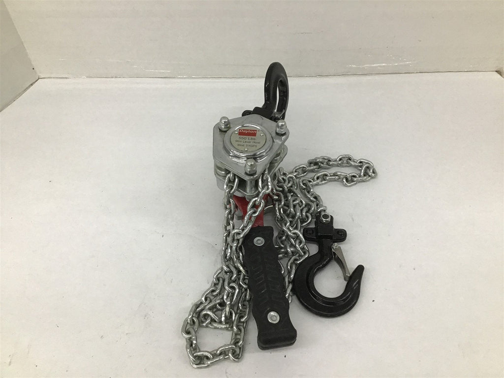 Dayton 5YGF5 550 LBS. Mini Lever Hoist Return Policy Returns accepted within 30 days. Items sold as is cannot be returned, unless description is in error. Buyer pays return freight. Shipping Policy We ship almost all items with 1 business day of cleared payment. We ship USPS and UPS. We can ship on your account. If you will be shipping freight, please be sure to provide all delivery contact information including a phone number. We will need to know if you have a fork lift or dock.
