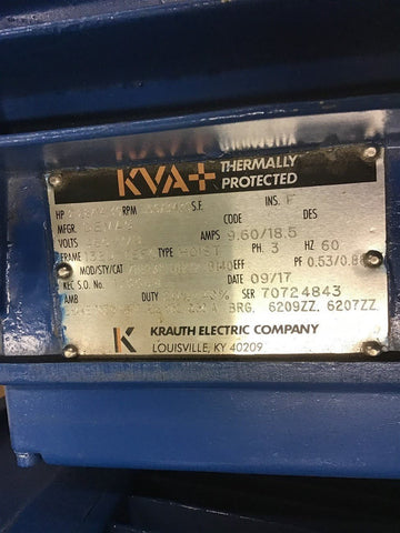 TEFC -- 3 Ph -- 60 Hz -- Footless -- USED---GOOD VISUAL CONDITION----10/19/ WH