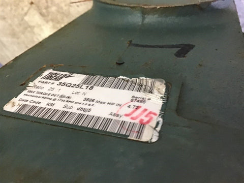 DODGE TIGEAR 2 35Q25L18 LEFT ANGLE GEAR REDUCER 25:1 RATIO 1.25" INPUT 1.5" OUT