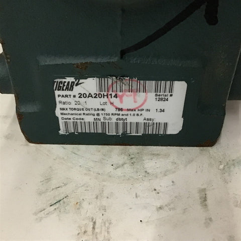 Dodge Tigear 20A20H14 Hollow Shaft Gear Reducer 20:1 Ratio 1.34 Input Hp Return Policy Returns accepted within 30 days. Items sold as is cannot be returned, unless description is in error. Buyer pays return freight. Shipping Policy We ship almost all items with 1 business day of cleared payment. We ship USPS and UPS. We can ship on your account. If you will be shipping freight, please be sure to provide all delivery contact information including a phone number. We will need to know if you have a fork lift or dock.