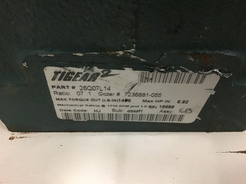 Dodge Tigear 26Q07L14 Left Angle Gear Reducer 7:1 Ratio 5.92 Input HP