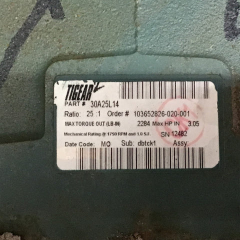 Dodge Tigear 30A25L14 Left Angle Gear Reducer 25:1 Ratio 3.05 Input HP