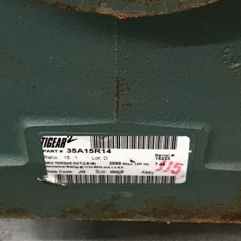 Dodge Tigear 35A15R14 Right Angle Gear Reducer 15:1 Ratio 7.44 Input HP
