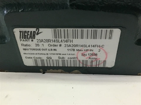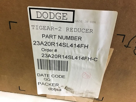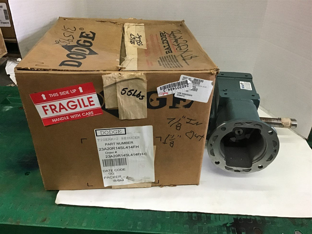 Dodge Tigear2 23A20R14SL414FH 20:1 Ratio Roght Angle Gear Reducer 2 HP Return Policy Returns accepted within 30 days. Items sold as is cannot be returned, unless description is in error. Buyer pays return freight. Shipping Policy We ship almost all items with 1 business day of cleared payment. We ship USPS and UPS. We can ship on your account. If you will be shipping freight, please be sure to provide all delivery contact information including a phone number. We will need to know if you have a fork lift or dock.