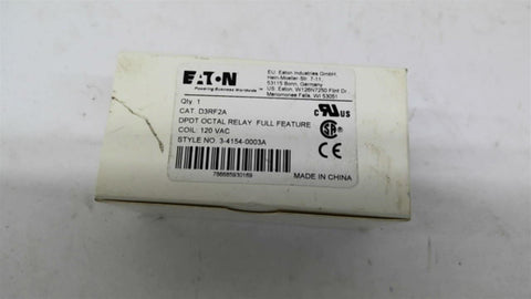 Eaton D3RF2A Octal Relay Full Feature 120 VAC Lot Of 3 Return Policy Returns accepted within 30 days. Items sold as is cannot be returned, unless description is in error. Buyer pays return freight. Shipping Policy We ship almost all items with 1 business day of cleared payment. We ship USPS and UPS. We can ship on your account. If you will be shipping freight, please be sure to provide all delivery contact information including a phone number. We will need to know if you have a fork lift or dock.