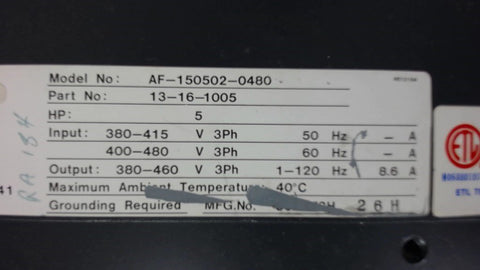 Eaton Dynamatic Adjustable Frquency Ac Drive, Af-150502-0480, 5Hp, 400/480 Ac In