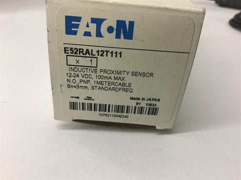 Eaton E52RAL12T111 Inductive Proximity Sensor 12-24 Vdc 100 MA max Return Policy Returns accepted within 30 days. Items sold as is cannot be returned, unless description is in error. Buyer pays return freight. Shipping Policy We ship almost all items with 1 business day of cleared payment. We ship USPS and UPS. We can ship on your account. If you will be shipping freight, please be sure to provide all delivery contact information including a phone number. We will need to know if you have a fork lift or dock.