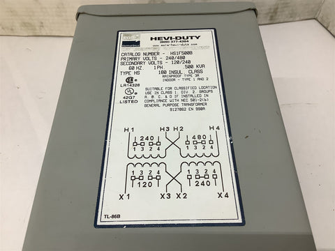 EGS HS1F500B Transformer Return Policy Returns accepted within 30 days. Items sold as is cannot be returned, unless description is in error. Buyer pays return freight. Shipping Policy We ship almost all items with 1 business day of cleared payment. We ship USPS and UPS. We can ship on your account. If you will be shipping freight, please be sure to provide all delivery contact information including a phone number. We will need to know if you have a fork lift or dock.
