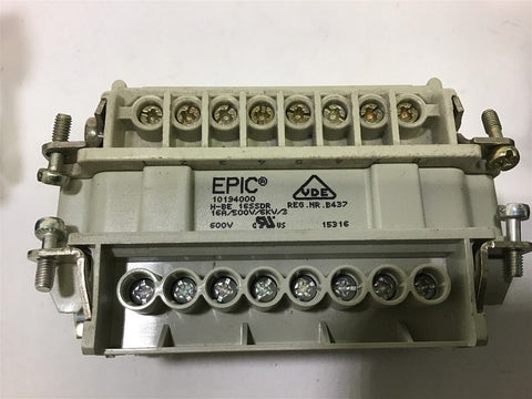 Epic 10194000 16-Pin Industrial Connector H-BE 16SSDR 16 A 6 KV with 2 Housings