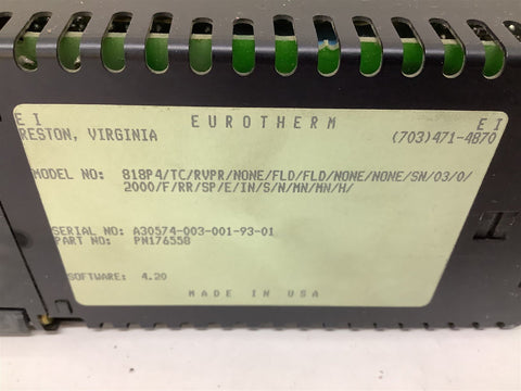 Eurotherm 818P4 Return Policy Returns accepted within 30 days. Items sold as is cannot be returned, unless description is in error. Buyer pays return freight. Shipping Policy We ship almost all items with 1 business day of cleared payment. We ship USPS and UPS. We can ship on your account. If you will be shipping freight, please be sure to provide all delivery contact information including a phone number. We will need to know if you have a fork lift or dock.