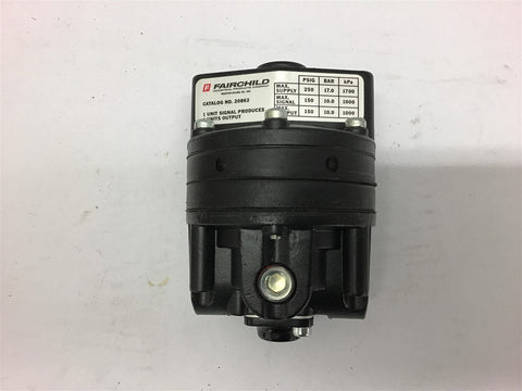 Fairchild 20862 Pneumatic Volume Booster 250 PSI Return Policy Returns accepted within 30 days. Items sold as is cannot be returned, unless description is in error. Buyer pays return freight. Shipping Policy We ship almost all items with 1 business day of cleared payment. We ship USPS and UPS. We can ship on your account. If you will be shipping freight, please be sure to provide all delivery contact information including a phone number. We will need to know if you have a fork lift or dock.