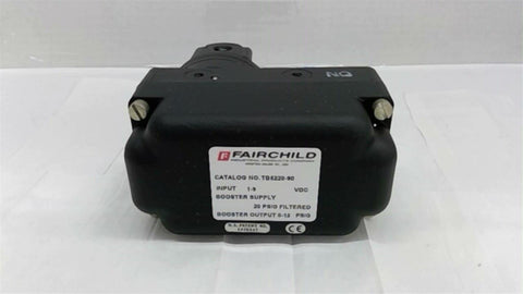 Fairchild TB5220-90 Transducer 1-9VDC Input 0-12 Output Return Policy Returns accepted within 30 days. Items sold as is cannot be returned, unless description is in error. Buyer pays return freight. Shipping Policy We ship almost all items with 1 business day of cleared payment. We ship USPS and UPS. We can ship on your account. If you will be shipping freight, please be sure to provide all delivery contact information including a phone number. We will need to know if you have a fork lift or dock.