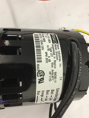 Fasco D408 1/150 HP AC Motor 115 volts 3000 Rpm .48 Amps 1 Speed Return Policy Returns accepted within 30 days. Items sold as is cannot be returned, unless description is in error. Buyer pays return freight. Shipping Policy We ship almost all items with 1 business day of cleared payment. We ship USPS and UPS. We can ship on your account. If you will be shipping freight, please be sure to provide all delivery contact information including a phone number. We will need to know if you have a fork lift or dock.