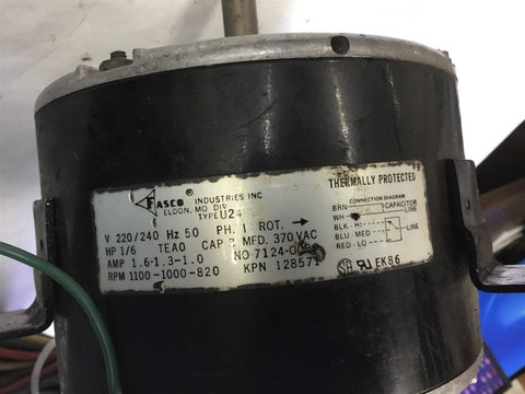 FASCO U24 220/240 V, 1/6 HP, SINGLE PHASE AIR OVER MOTOR 1100-1000-820 RPM