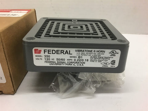 Federal Signal 350-120-30 Vibratone Horn 120 Vac Return Policy Returns accepted within 30 days. Items sold as is cannot be returned, unless description is in error. Buyer pays return freight. Shipping Policy We ship almost all items with 1 business day of cleared payment. We ship USPS and UPS. We can ship on your account. If you will be shipping freight, please be sure to provide all delivery contact information including a phone number. We will need to know if you have a fork lift or dock.