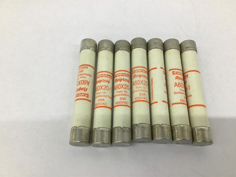 Ferraz Shawmut A60X20-1 Semiconductor Fuse Form 101 20A 600V AC Lot Of 7 Return Policy Returns accepted within 30 days. Items sold as is cannot be returned, unless description is in error. Buyer pays return freight. Shipping Policy We ship almost all items with 1 business day of cleared payment. We ship USPS and UPS. We can ship on your account. If you will be shipping freight, please be sure to provide all delivery contact information including a phone number. We will need to know if you have a fork lift or dock.