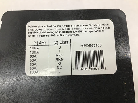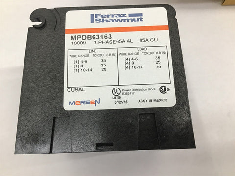 Ferraz Shawmut MPDB67563 3 Pole Power Distribution Block Return Policy Returns accepted within 30 days. Items sold as is cannot be returned, unless description is in error. Buyer pays return freight. Shipping Policy We ship almost all items with 1 business day of cleared payment. We ship USPS and UPS. We can ship on your account. If you will be shipping freight, please be sure to provide all delivery contact information including a phone number. We will need to know if you have a fork lift or dock.