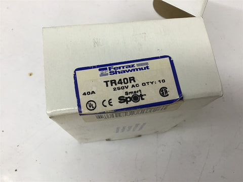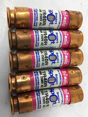 Ferraz Shawmut TR40R 40A 250V Fuse Lot Of 5 Return Policy Returns accepted within 30 days. Items sold as is cannot be returned, unless description is in error. Buyer pays return freight. Shipping Policy We ship almost all items with 1 business day of cleared payment. We ship USPS and UPS. We can ship on your account. If you will be shipping freight, please be sure to provide all delivery contact information including a phone number. We will need to know if you have a fork lift or dock.