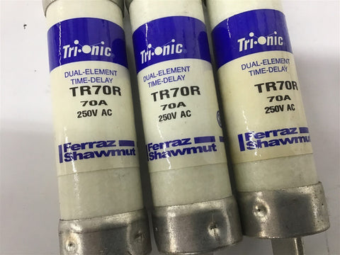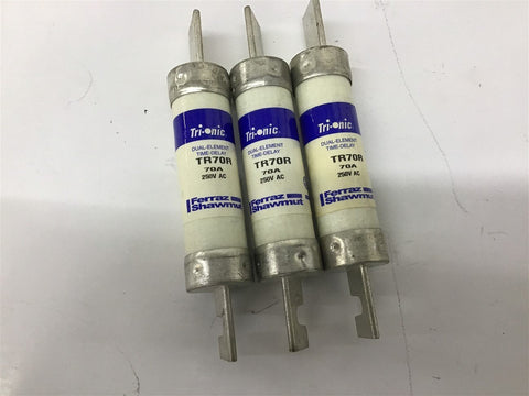 Ferraz Shawmut TR70R 70A 250V Fuse Lot Of 3 Return Policy Returns accepted within 30 days. Items sold as is cannot be returned, unless description is in error. Buyer pays return freight. Shipping Policy We ship almost all items with 1 business day of cleared payment. We ship USPS and UPS. We can ship on your account. If you will be shipping freight, please be sure to provide all delivery contact information including a phone number. We will need to know if you have a fork lift or dock.