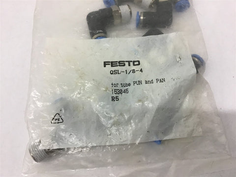 Festo QSL-1/8-4 Fitting Lot of 10 Return Policy Returns accepted within 30 days. Items sold as is cannot be returned, unless description is in error. Buyer pays return freight. Shipping Policy We ship almost all items with 1 business day of cleared payment. We ship USPS and UPS. We can ship on your account. If you will be shipping freight, please be sure to provide all delivery contact information including a phone number. We will need to know if you have a fork lift or dock.