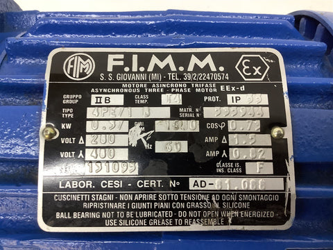 FIMM 4PE71 AC Motor .37KW 280/480V 1680RPM 3PH