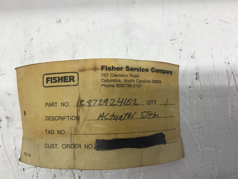 Fisher 1E872924102 Diaphragam Rod Acutator Stem Return Policy Returns accepted within 30 days. Items sold as is cannot be returned, unless description is in error. Buyer pays return freight. Shipping Policy We ship almost all items with 1 business day of cleared payment. We ship USPS and UPS. We can ship on your account. If you will be shipping freight, please be sure to provide all delivery contact information including a phone number. We will need to know if you have a fork lift or dock.