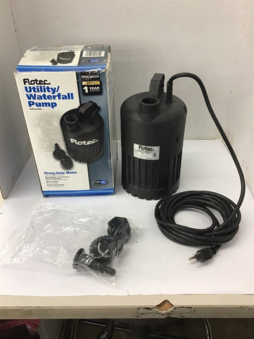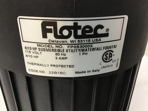 Flotec FP0S3000X 4/10 Hp Submersible Utility/Waterfall Pump 115 Volt 3 Amp Return Policy Returns accepted within 30 days. Items sold as is cannot be returned, unless description is in error. Buyer pays return freight. Shipping Policy We ship almost all items with 1 business day of cleared payment. We ship USPS and UPS. We can ship on your account. If you will be shipping freight, please be sure to provide all delivery contact information including a phone number. We will need to know if you have a fork lift or dock.