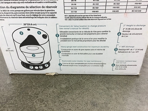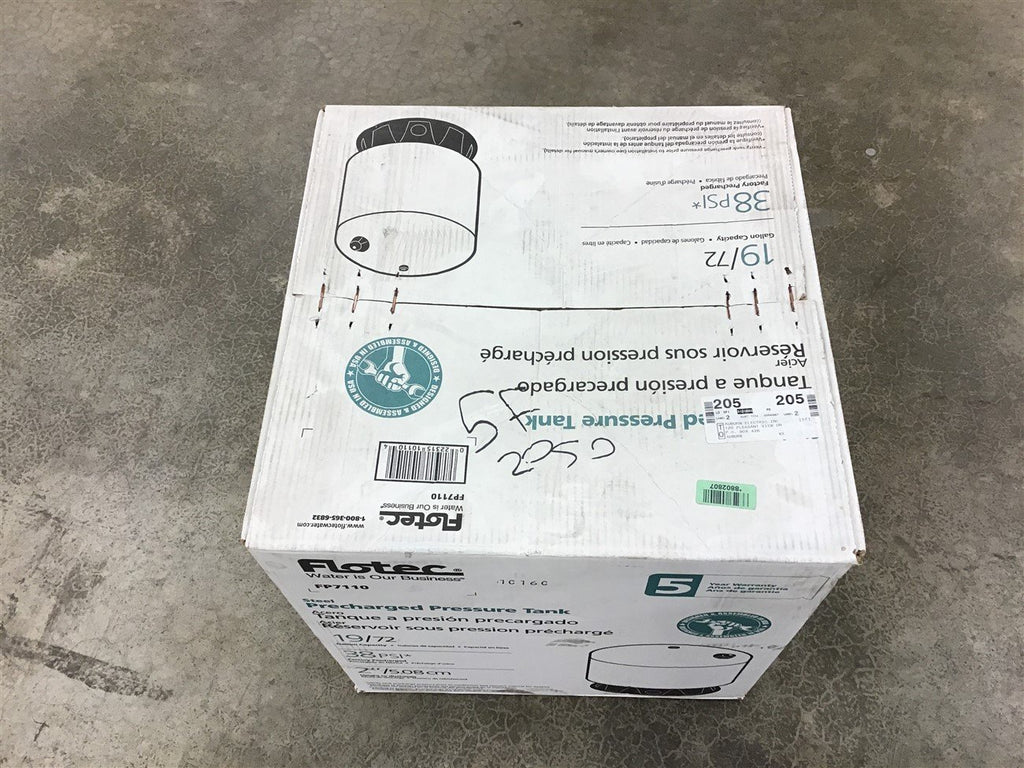Flotec FP7110 Steel Pre-Charged Pressure Tank 19 Gallon 38 PSi Return Policy Returns accepted within 30 days. Items sold as is cannot be returned, unless description is in error. Buyer pays return freight. Shipping Policy We ship almost all items with 1 business day of cleared payment. We ship USPS and UPS. We can ship on your account. If you will be shipping freight, please be sure to provide all delivery contact information including a phone number. We will need to know if you have a fork lift or dock.