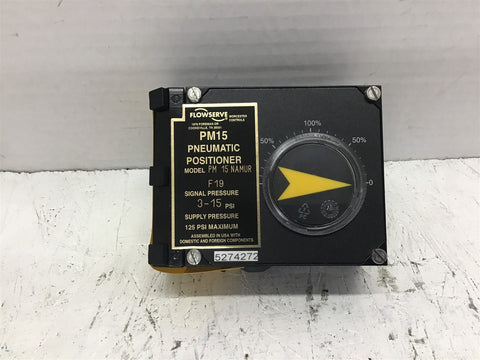 Flowserve PM15 NAMUR Pneumatic Valce Positioner 3-15 PSI Return Policy Returns accepted within 30 days. Items sold as is cannot be returned, unless description is in error. Buyer pays return freight. Shipping Policy We ship almost all items with 1 business day of cleared payment. We ship USPS and UPS. We can ship on your account. If you will be shipping freight, please be sure to provide all delivery contact information including a phone number. We will need to know if you have a fork lift or dock.
