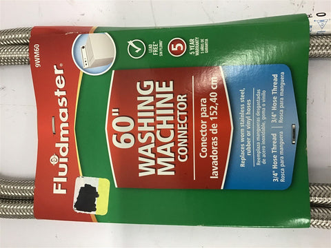 Fluidmaster 9WM60 60" Washing machine Connector 3/4" Hose Thread Lot Of 2 Return Policy Returns accepted within 30 days. Items sold as is cannot be returned, unless description is in error. Buyer pays return freight. Shipping Policy We ship almost all items with 1 business day of cleared payment. We ship USPS and UPS. We can ship on your account. If you will be shipping freight, please be sure to provide all delivery contact information including a phone number. We will need to know if you have a fork lift or dock.