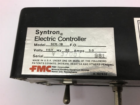 FMC Syntron Electric Controller SCR-1B Return Policy Returns accepted within 30 days. Items sold as is cannot be returned, unless description is in error. Buyer pays return freight. Shipping Policy We ship almost all items with 1 business day of cleared payment. We ship USPS and UPS. We can ship on your account. If you will be shipping freight, please be sure to provide all delivery contact information including a phone number. We will need to know if you have a fork lift or dock.