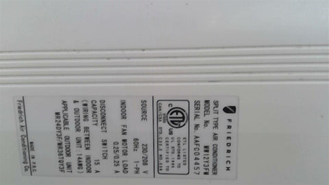 Friedrich MW12Y3FM Split Type Air Conditioner Return Policy Returns accepted within 30 days. Items sold as is cannot be returned, unless description is in error. Buyer pays return freight. Shipping Policy We ship almost all items with 1 business day of cleared payment. We ship USPS and UPS. We can ship on your account. If you will be shipping freight, please be sure to provide all delivery contact information including a phone number. We will need to know if you have a fork lift or dock.