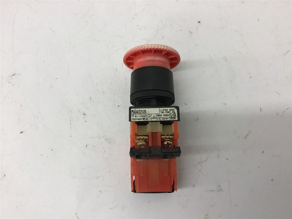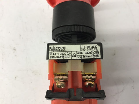 Fuji AR22V2R E-Stop Push Button 6 Amp 250 Volts Used---Good Visual Condition---2/21/LBCC 116302---SS205--SK-118-A-1---1.00