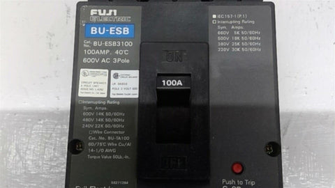 Fuji BUESB3100 Circuit Breaker 3 Pole 100 A 600 V Return Policy Returns accepted within 30 days. Items sold as is cannot be returned, unless description is in error. Buyer pays return freight. Shipping Policy We ship almost all items with 1 business day of cleared payment. We ship USPS and UPS. We can ship on your account. If you will be shipping freight, please be sure to provide all delivery contact information including a phone number. We will need to know if you have a fork lift or dock.