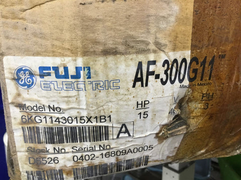 Fuji Electric AF-300G11 6KG1143015X1B1 15Hp 380-480V Return Policy Returns accepted within 30 days. Items sold as is cannot be returned, unless description is in error. Buyer pays return freight. Shipping Policy We ship almost all items with 1 business day of cleared payment. We ship USPS and UPS. We can ship on your account. If you will be shipping freight, please be sure to provide all delivery contact information including a phone number. We will need to know if you have a fork lift or dock.