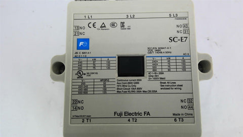Fuji Electric SC-E7 Contactor 125 Hp 600 Volts Used--Good Visual Condition---6/24/RVCC 154194---SS283 T-16-5-9 ---15.00