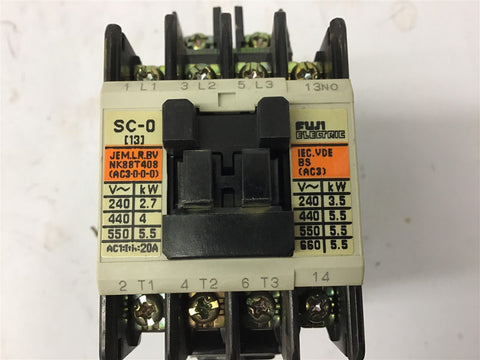 Fuji SC-0 3 Pole Contactor 480 Volt @ 5 Hp 110 V Coil