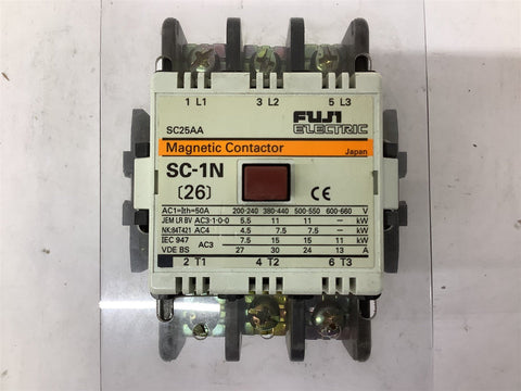 Fuji SC25AA Electric Magnetic Contactor 600 Volts 26 Amp 100/110 Volt Coil Return Policy Returns accepted within 30 days. Items sold as is cannot be returned, unless description is in error. Buyer pays return freight. Shipping Policy We ship almost all items with 1 business day of cleared payment. We ship USPS and UPS. We can ship on your account. If you will be shipping freight, please be sure to provide all delivery contact information including a phone number. We will need to know if you have a fork lift or dock.