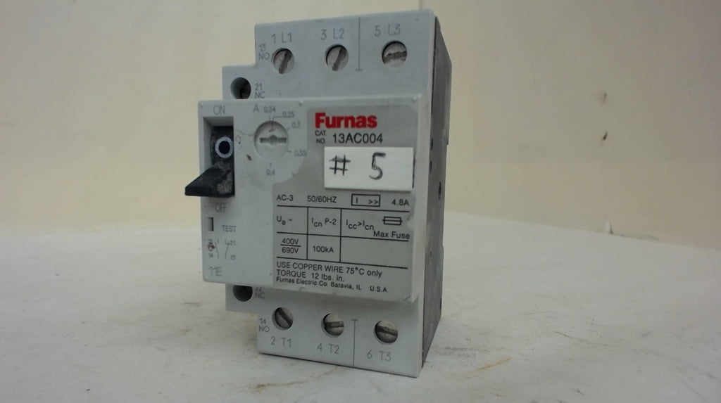 Furnas 13Ac004 Manual Motor Starter, Series A, 3 Pole, 4.8 A, 460 V / 18 Hp