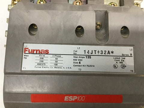 Furnas 14JT 32A Starter 3 PH 135 Amps 600 VAC Size 4