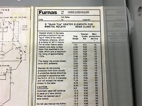 Furnas 16BE32BH552R Starter Mounted in Enclosure Return Policy Returns accepted within 30 days. Items sold as is cannot be returned, unless description is in error. Buyer pays return freight. Shipping Policy We ship almost all items with 1 business day of cleared payment. We ship USPS and UPS. We can ship on your account. If you will be shipping freight, please be sure to provide all delivery contact information including a phone number. We will need to know if you have a fork lift or dock.