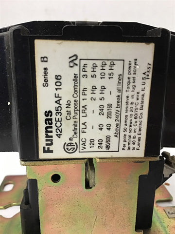 Furnas 42CE35AF106 Contactor 460 Volts @ 15 HP 120 Volt Coil