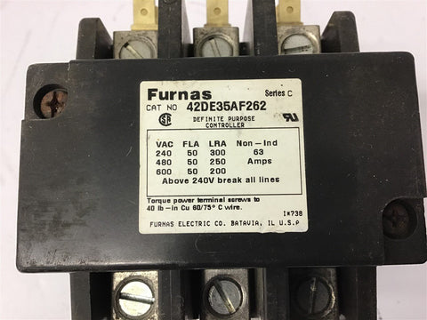 Furnas 42DE35AF262 Contactor 600 Volts 50 Amps 120 Volt Coil
