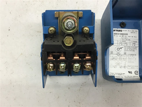 Furnas 69ES109022RR Pressure Switch 2 Pole 230 volts 3 Hp 3 Phase 20-40 PSI Return Policy Returns accepted within 30 days. Items sold as is cannot be returned, unless description is in error. Buyer pays return freight. Shipping Policy We ship almost all items with 1 business day of cleared payment. We ship USPS and UPS. We can ship on your account. If you will be shipping freight, please be sure to provide all delivery contact information including a phone number. We will need to know if you have a fork lift or dock.