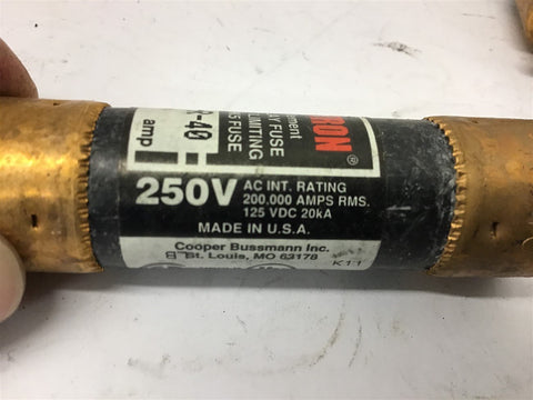 Fusetron FRN-R-40 Dual Element Fuse 40 Amp 250 volts Lot Of 4 Return Policy Returns accepted within 30 days. Items sold as is cannot be returned, unless description is in error. Buyer pays return freight. Shipping Policy We ship almost all items with 1 business day of cleared payment. We ship USPS and UPS. We can ship on your account. If you will be shipping freight, please be sure to provide all delivery contact information including a phone number. We will need to know if you have a fork lift or dock.
