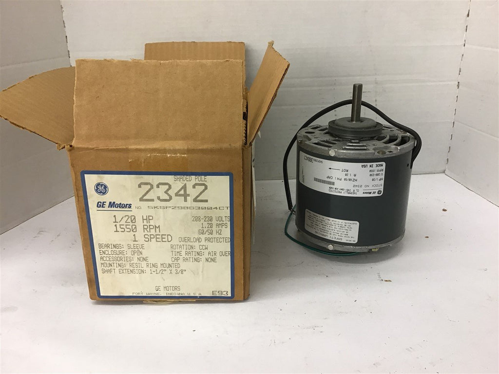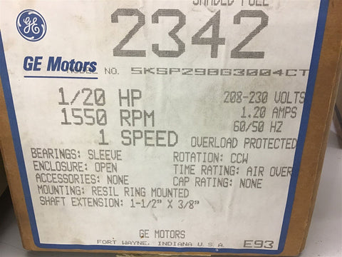 Ge 5KSP290G3004CT 1/20 HP AC Motor 208-230 Volts 1550 Rpm Return Policy Returns accepted within 30 days. Items sold as is cannot be returned, unless description is in error. Buyer pays return freight. Shipping Policy We ship almost all items with 1 business day of cleared payment. We ship USPS and UPS. We can ship on your account. If you will be shipping freight, please be sure to provide all delivery contact information including a phone number. We will need to know if you have a fork lift or dock.