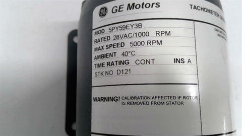 GE 5PY59EY3 Tachometer Generator 28VAC/100 RPM 5000RPM Return Policy Returns accepted within 30 days. Items sold as is cannot be returned, unless description is in error. Buyer pays return freight. Shipping Policy We ship almost all items with 1 business day of cleared payment. We ship USPS and UPS. We can ship on your account. If you will be shipping freight, please be sure to provide all delivery contact information including a phone number. We will need to know if you have a fork lift or dock.