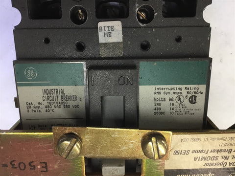 GE TED134020 20 AMP CIRCUIT BREAKER 480 VAC, 3 POLE WITH DISCONNECT SWITCH