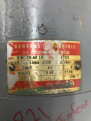 General Electric 5BC79AE15 DC Motor 1/2 HP 140-200 V 1725RPM 79AE Return Policy Returns accepted within 30 days. Items sold as is cannot be returned, unless description is in error. Buyer pays return freight. Shipping Policy We ship almost all items with 1 business day of cleared payment. We ship USPS and UPS. We can ship on your account. If you will be shipping freight, please be sure to provide all delivery contact information including a phone number. We will need to know if you have a fork lift or dock.