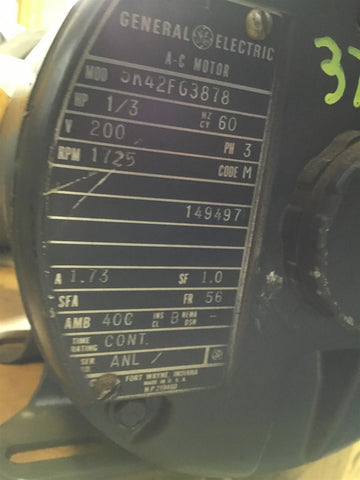 GENERAL ELECTRIC 5K42FG3878 1/3 HP AC MOTOR 200 VOLTS, 1725 RPM, 4P, 56 FRAME